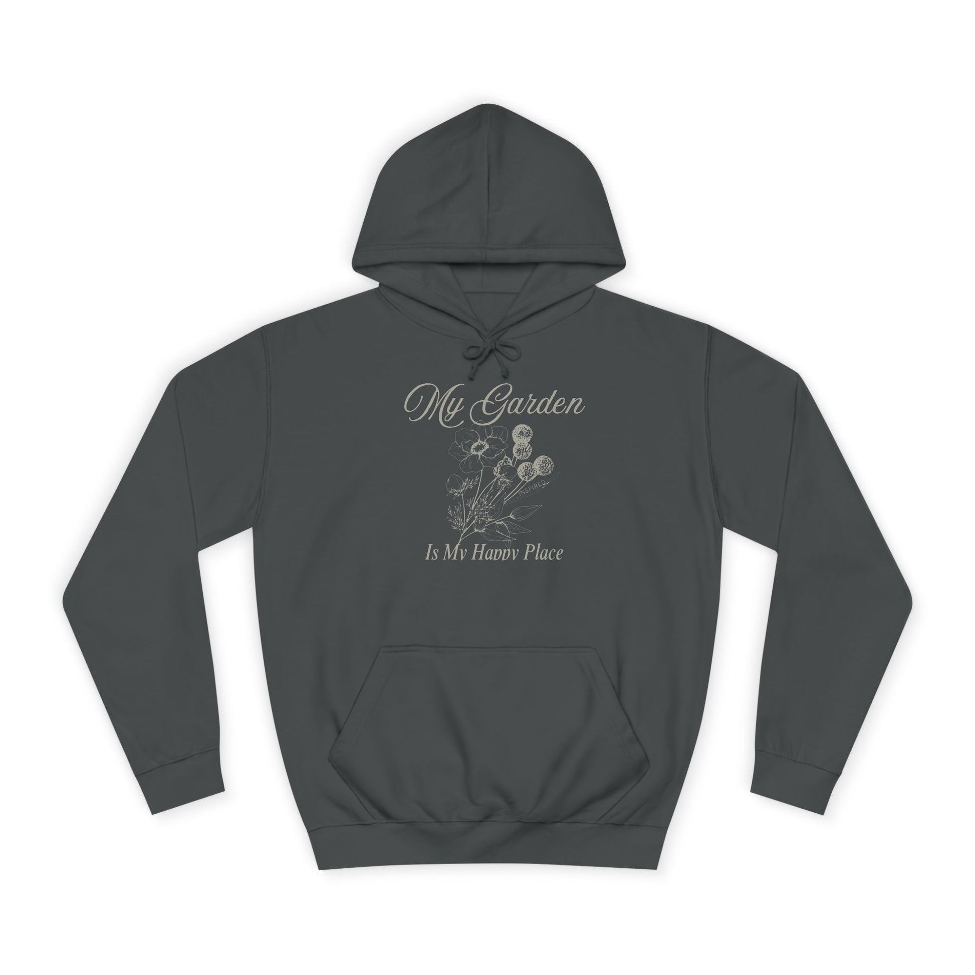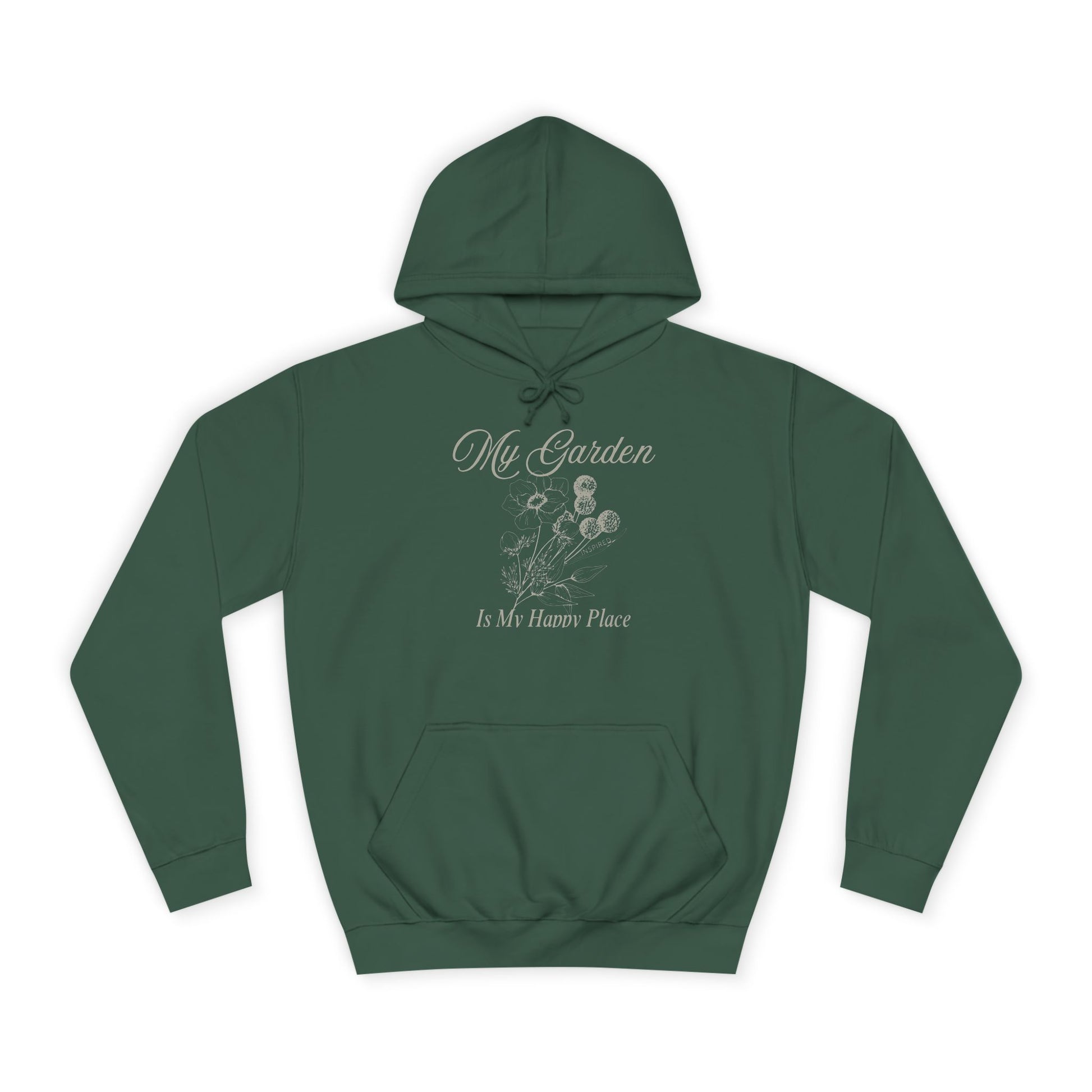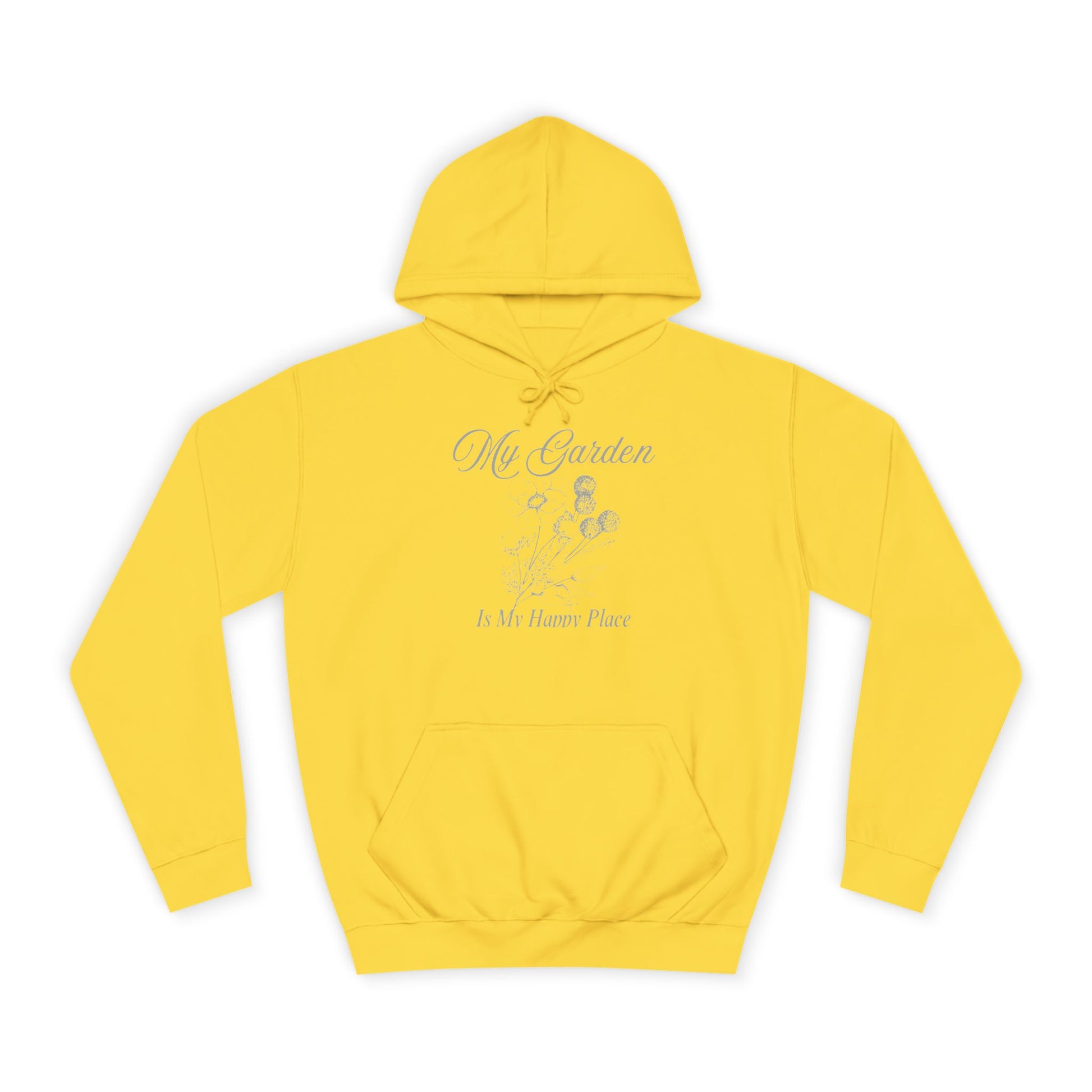 Stay cozy and comfortable in this Unisex College Hoodie featuring the uplifting message 'my garden is my happy place'. Perfect for garden lovers and nature enthusiasts, this hoodie exudes a peaceful and joyful vibe. Wear it while tending to your garden or lounging at home for a relaxed and happy feel. Ideal for birthdays, Earth Day, and any occasion celebrating nature.